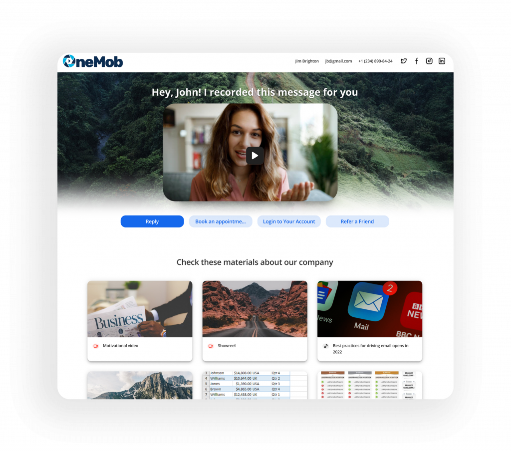 OneMob allows you to create microsites that showcase all relevant collateral in one centralized location. This not only streamlines the recipient’s experience but also provides valuable engagement data beyond simple email opens or link clicks.